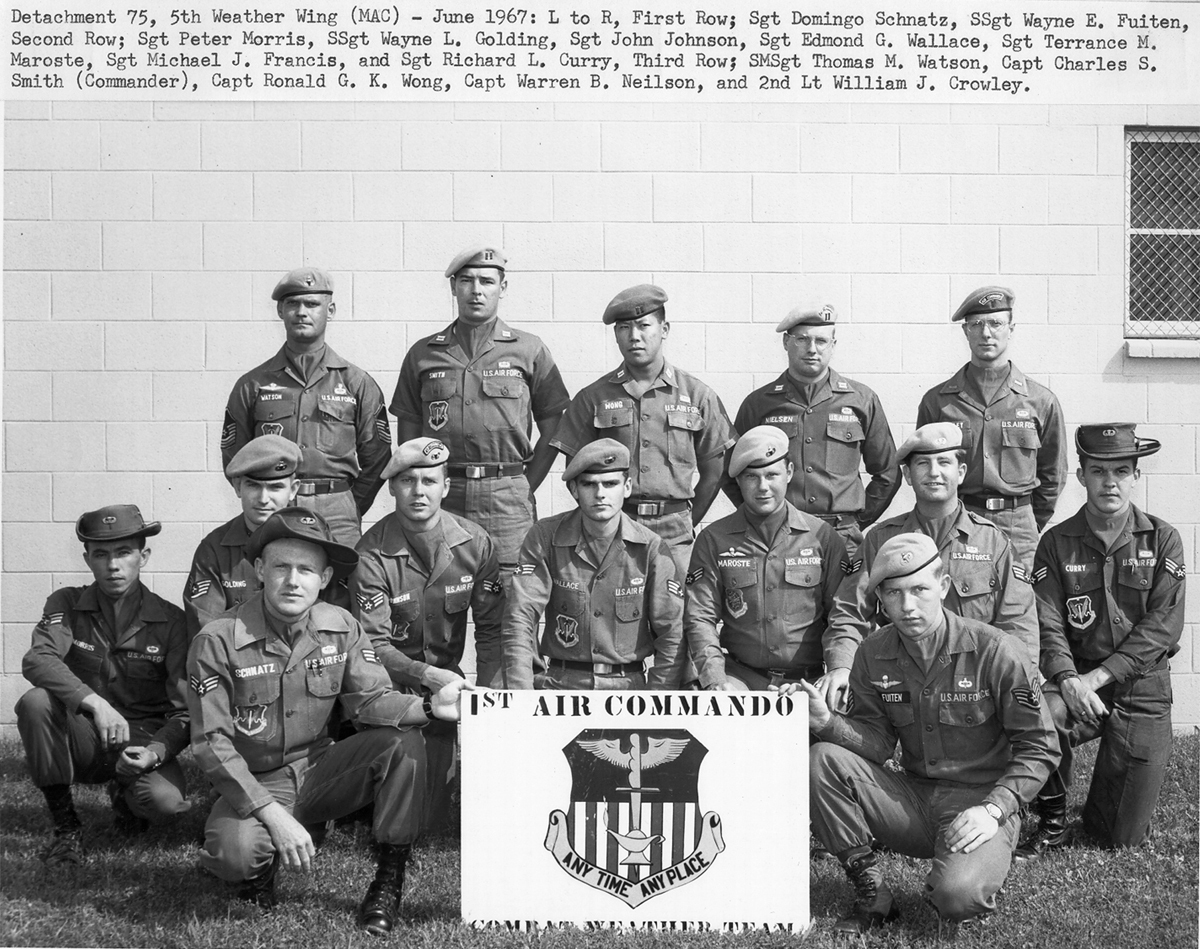 The first 2 deployments by Commando Weather Team (CWT) personnel were made as TDYs via the Waterpump Project or Project 404, thereafter all CWTs were assigned to the 10th Weather Squadron (Udorn RTAFB) for administrative purposes, but were essentially operationally under the control of the Air Attache-which in reality meant that the US Ambassador called the shots. Period.